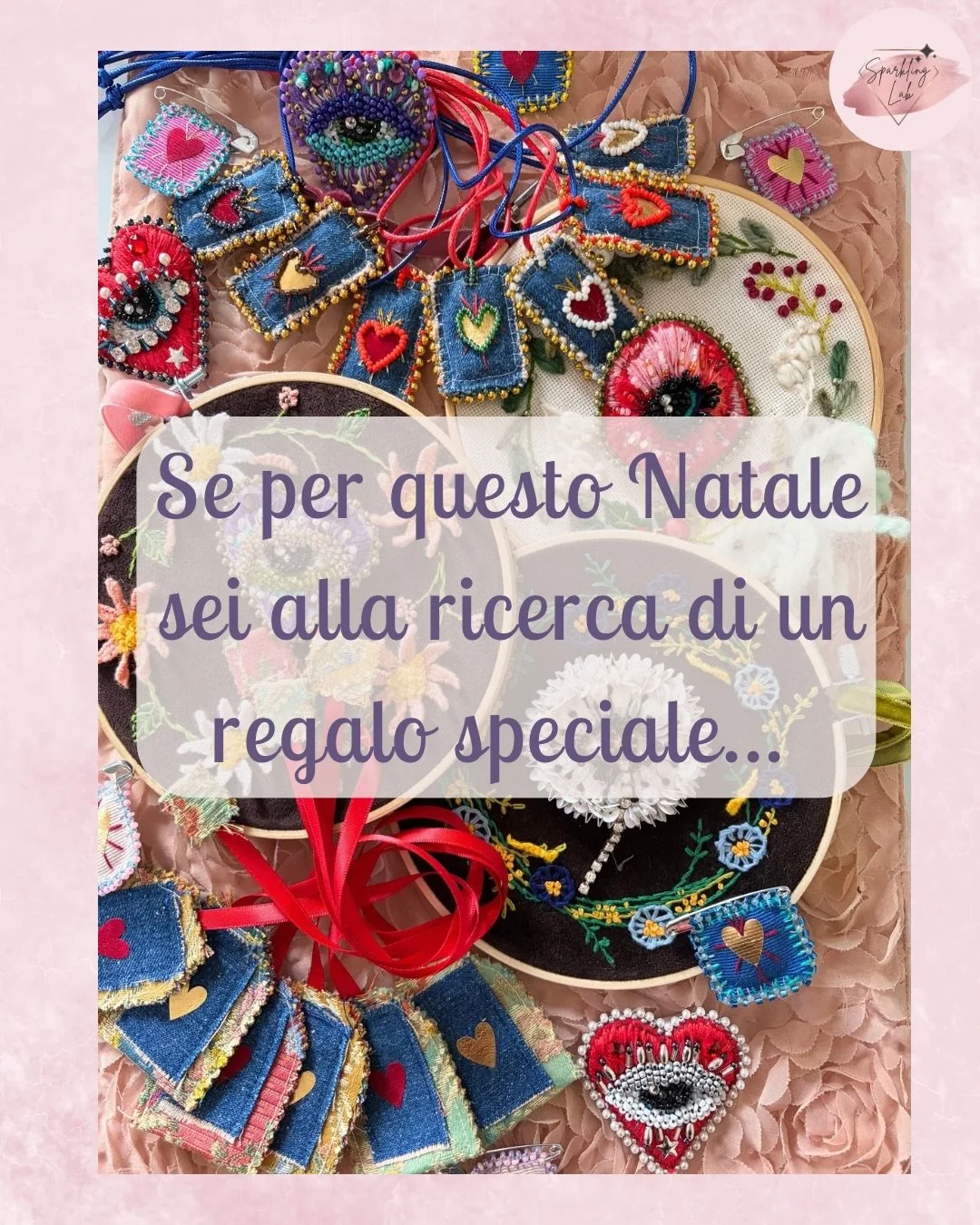Proponiamo inltre workshop esperienziali di ricamo creativo, sia in presenza che online, per scoprire il piacere del fare con le mani.
